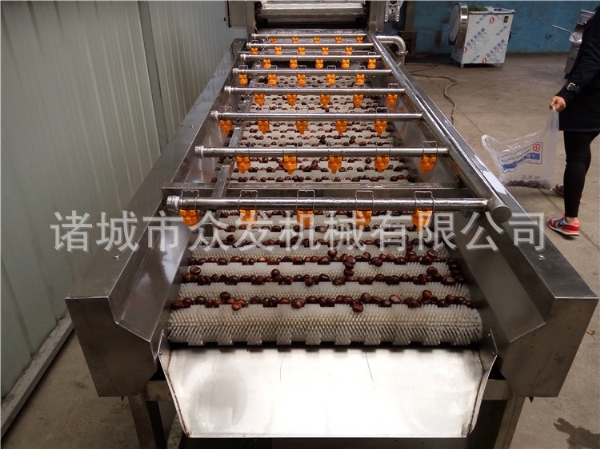 多层带式干燥机 大枣链条式烘干机 大枣加工生产线是大枣,蔬菜,水产生产线中的重要产品,主要用于大枣,蔬菜,水产的清洗。气泡清洗机的原理主要是利用箱体前部分设备箱体中注适量的水,经过加热管将水温加热,原料在经过箱体时,会与气泡机和水的结合作用下做翻滚状态,并随网带不断向前推进,在出水面时,高端设有喷淋头,高压冲洗。