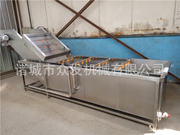 大枣清洗机整机分为两部分,前段为清洗去杂的气泡清洗,后面衔接毛刷喷淋清洗。清洗池配备高压风机及管道出气孔,在水池中产生大量密集气泡,对产品进行翻滚搓洗,模拟人工清洗。清洗池主要是去除杂质,灰尘。大枣清洗机在提升的过程中,再次进行喷淋冲洗,使相同比例的杂质通过网带掉落在池中。后面衔接的毛辊喷淋清洗,可以有效的去除粘附在产品表面的灰土。通过毛辊的运转,产品在上面不断的旋转,上方配备喷淋再次的冲洗。更有效的增加产品的清洁度。毛辊的旋转将产品的表面进行抛光,增加产品的色泽度,提高产品质量卖点。